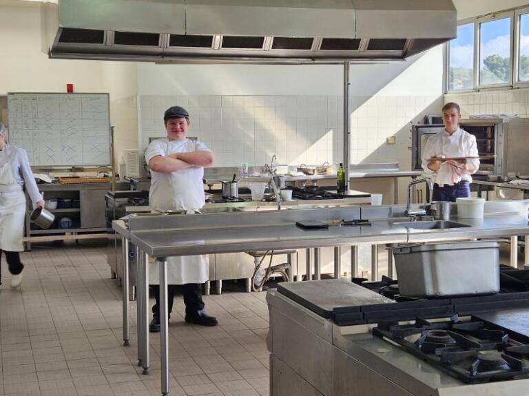 A l ‘occasion de la Saint Valentin, les élèves de terminale Bac professionnel Restauration et Service du Lycée de Balagne ont été ravis de concocter un menu spécial conçu avec soin et passion. Ce projet a permis aux cuisiniers d’ exprimer leur créativité et aux serveurs de mettre en avant leurs compétences avec un service attentionné et personnalisé dans une ambiance chaleureuse et conviviale : feuilleté de saumon-gambas, velouté de crustacés; pavé de maigre , risotto aux asperges, coulis de betterave; fondant au chocolat, cœur framboise et glace gingembre.